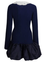 « Self-Portrait » robe femme ballon bleu maille et taffetas coupe slim