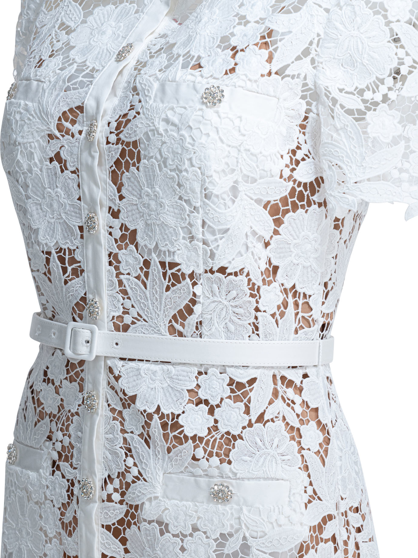 Cette robe midi Self-portrait pour femme incarne une élégance sophistiquée et féminine. Confectionnée en dentelle travaillée et ornée d’applications de strass, elle présente une silhouette ajustée avec une structure chemisier et une fermeture boutonnée sur toute la longueur. Sa ceinture amovible permet de souligner la taille, tandis que l’ourlet festonné apporte une finition délicate. Dotée d’une doublure intérieure amovible, elle offre différentes possibilités de style tout en conservant une tenue structurée.