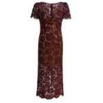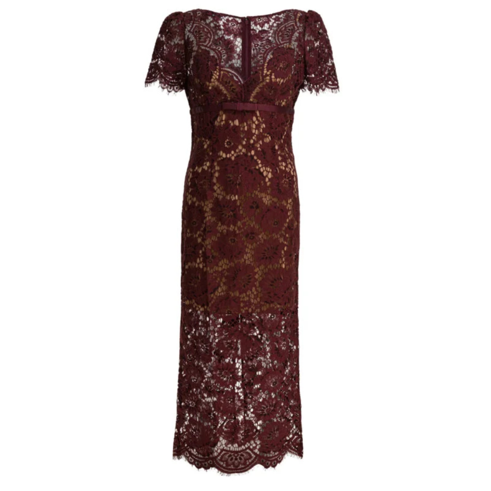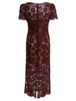 « Self-Portrait » robe midi femme bordeaux dentelle florale coupe slim