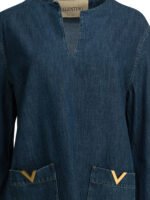 Cette robe en jean Valentino pour femme incarne une vision raffinée du denim à travers une silhouette féminine et contemporaine. Confectionnée en coton bleu, elle offre une texture authentique et confortable idéale pour la saison printemps-été. Sa ligne épurée met en valeur la matière tout en assurant une grande polyvalence stylistique, permettant de composer des looks casual chic ou plus sophistiqués. Élégante et intemporelle, cette pièce reflète parfaitement le savoir-faire de la maison italienne.