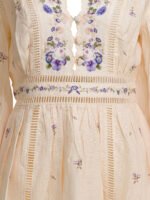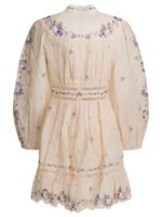 Cette robe Zimmermann modèle Patience pour femme se distingue par son élégance romantique et son travail délicat des matières. Confectionnée en lin, elle offre une texture légère et respirante idéale pour la saison printemps-été. Sa silhouette légèrement ajustée au niveau du buste et de la taille s’évase vers le bas grâce à une coupe fluide qui met en valeur le mouvement du tissu. Le décolleté en V profond et les boutons rouleau sur le buste apportent une touche raffinée, tandis que les broderies florales et l’ourlet festonné soulignent le caractère sophistiqué du modèle. La fermeture zippée invisible au dos assure une finition élégante et discrète.