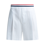 Ce short de style tailleur par Brunello Cucinelli pour femme est confectionné dans un tissu léger à la structure compacte pour la saison printemps-été 2026. Sa silhouette présente une ligne souple et légèrement large, avec une longueur s’arrêtant au-dessus du genou. Le modèle se distingue par sa taille élastiquée rehaussée d’une bande rayée contrastée, ainsi que par des plis verticaux à l’avant qui structurent la pièce. Doté de poches en biais sur les hanches et de poches passepoilées à l’arrière, ce short allie des finitions artisanales italiennes à des détails fonctionnels pour un équilibre parfait entre élégance formelle et confort décontracté.