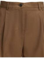 ce short de la maison herno pour femme est une pièce de prêt-à-porter au design tailleur et sophistiqué conçue pour la saison printemps-été 2026. fabriqué en italie, il est intégralement confectionné dans une laine vierge de première qualité (100 %), offrant une structure lisse, un toucher compact et une tenue impeccable propre aux standards de la haute manufacture italienne. sa silhouette se distingue par une coupe régulière (regular fit) à taille haute et une ligne large s’arrêtant au genou, alliant l’esthétique minimaliste de la griffe à une élégance formelle idéale pour vos tenues de saison. le design au coloris marron présente une construction soignée avec des pinces frontales apportant un volume maîtrisé, des passants de ceinture et un revers cousu au bas de jambe qui souligne le prestige de la coupe. la structure inclut des poches insérées sur les hanches, des poches passepoilées boutonnées à l’arrière et une fermeture par zip et bouton dissimulés, garantissant une silhouette épurée et un confort de portage exceptionnel. ce modèle allie parfaitement la noblesse d’une fibre naturelle thermorégulatrice à une ingénierie de coupe architecturale, constituant un essentiel de prestige pour votre vestiaire.