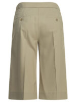 ce bermuda de la maison max mara pour femme est une pièce de tailleur estivale d’une grande distinction conçue pour la saison printemps-été 2026. fabriqué en italie, il est confectionné dans un canevas précieux composé de laine vierge, de mohair et de soie, offrant une texture noble, une tenue impeccable et un éclat subtil. sa silhouette adopte une coupe droite (regular fit) avec une taille haute structurée, créant une ligne allongée et élégante. le design présente une fermeture frontale avec une ceinture montée, une glissière sous patte et un crochet métallique discret. la construction sartoriale se distingue par des plis centraux marqués au fer, des poches italiennes insérées sur les hanches et des poches passepoilées boutonnées à l’arrière. doté de pinces cousues au dos pour un ajustement parfait et d’une doublure intérieure en tissu stretch pour un confort optimal, ce modèle au coloris beige sable (006) allie parfaitement la rigueur du vestiaire formel à la légèreté des matières naturelles.
