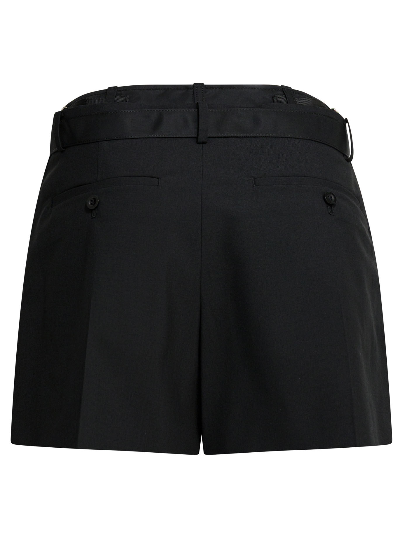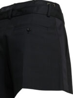 ce short de la maison sacai pour femme est une pièce de prêt-à-porter hybride au design avant-gardiste conçue pour la saison printemps-été 2026. fabriqué au japon, il est confectionné dans un tissu technique alliant le polyester et la laine, offrant une tenue impeccable et une esthétique inspirée du tailoring traditionnel. sa silhouette se distingue par une taille haute structurée et une coupe droite (regular fit) aux lignes nettes, rehaussée par une ceinture intégrée permettant d’ajuster parfaitement la taille. le design au coloris noir profond (001) présente des inserts contrastés en nylon et en cupro, apportant une variation de textures et une définition visuelle propre à l’approche déconstructive de chitose abe. la construction soignée inclut une fermeture frontale par glissière et bouton, des passants de ceinture fonctionnels et des coutures apparentes qui soulignent l’architecture du vêtement. ce modèle allie parfaitement la rigueur de la coupe classique à la modernité des matières techniques, constituant une pièce forte et sophistiquée pour votre vestiaire estival.