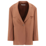 Ce blazer marron à un bouton signé Acne Studios propose une silhouette élégante et structurée, idéale pour une allure contemporaine et sophistiquée. Confectionné dans un mélange de polyester et de laine, il offre confort, tenue et chaleur pour la saison automne-hiver. Sa coupe féminine légèrement ajustée en fait une pièce polyvalente, parfaite pour un look professionnel ou casual chic.
