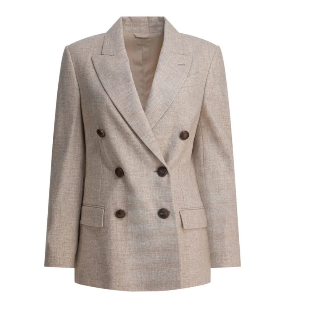 « Brunello Cucinelli » blazer croisé femme beige laine vierge et cachemire coupe regular