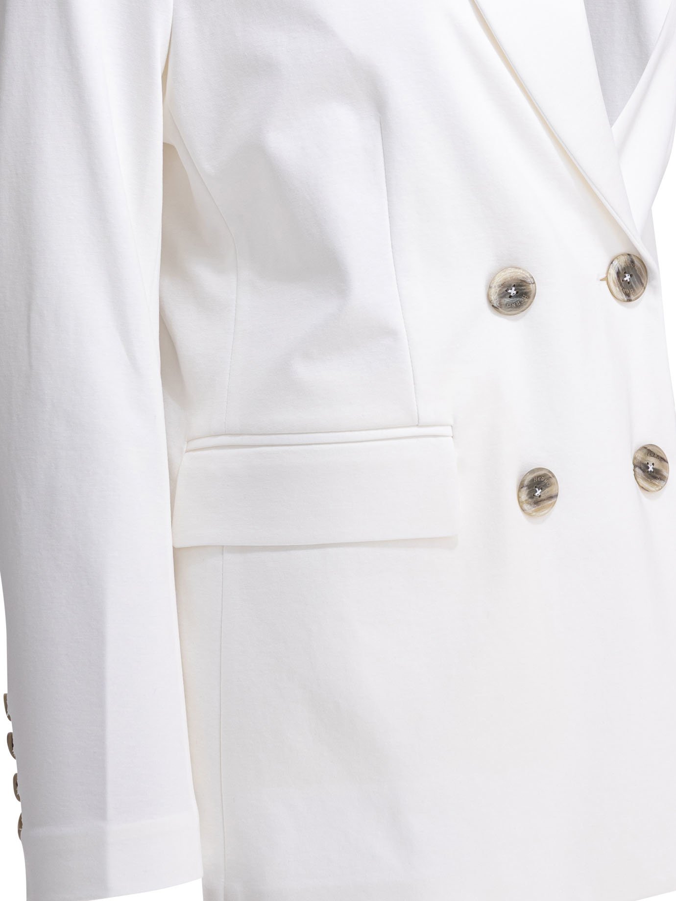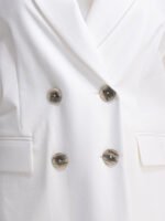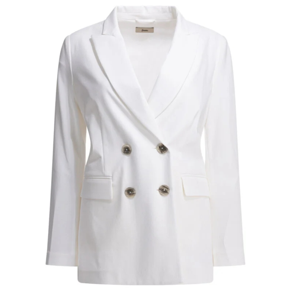 Ce blazer Herno pour femme incarne une élégance contemporaine inspirée du tailoring italien. Confectionné dans un mélange de coton, polyamide et élasthanne, il offre une structure raffinée et un confort optimal. Sa coupe légèrement cintrée souligne la silhouette tout en conservant une allure moderne et fluide. Doté de revers classiques et d’une fermeture croisée à boutons métalliques, ce blazer est complété par des poches à rabat qui renforcent son style sophistiqué et intemporel.