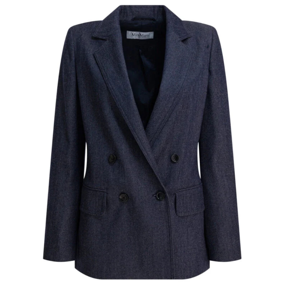 « Max Mara » blazer croisé femme bleu effet denim laine coupe regular