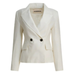 Ce blazer Sandbeige pour femme se distingue par une silhouette élégante et une confection raffinée. Réalisé dans un mélange de laine et de soie, il offre une texture douce et une tenue structurée idéale pour la saison automne-hiver. Sa coupe regular et ses manches longues créent une allure moderne et équilibrée, parfaite pour un style chic et contemporain. Sa teinte blanc crème apporte luminosité et sophistication à un vestiaire féminin.