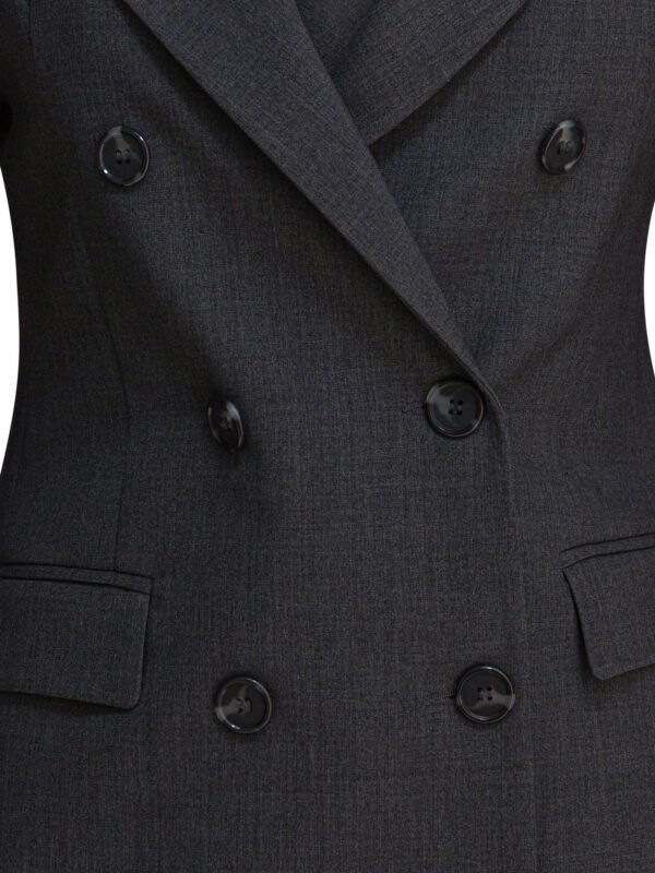 Le blazer croisé femme Semper se distingue par une construction structurée aux lignes nettes et raffinées. Confectionné en polyester, viscose et élasthanne, il allie confort et élégance grâce à une matière souple et légèrement stretch. Ses revers à pointes et sa fermeture croisée soulignent son allure formelle, tandis que ses poches à rabat et sa poche poitrine passepoilée ajoutent des détails fonctionnels. Avec sa coupe regular et son coloris gris anthracite, ce modèle est une pièce intemporelle idéale pour compléter une tenue de travail ou un look habillé.