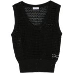 Ce top Brunello Cucinelli incarne l’élégance discrète et la qualité artisanale de la maison italienne. Confectionné en coton avec une touche de polyester, il offre une texture douce et une tenue impeccable. Sa coupe raffinée et sa teinte noire intemporelle en font une pièce polyvalente, idéale aussi bien pour un look casual chic que pour une tenue plus habillée. Un essentiel du vestiaire féminin, symbole de confort, de style et de sophistication.