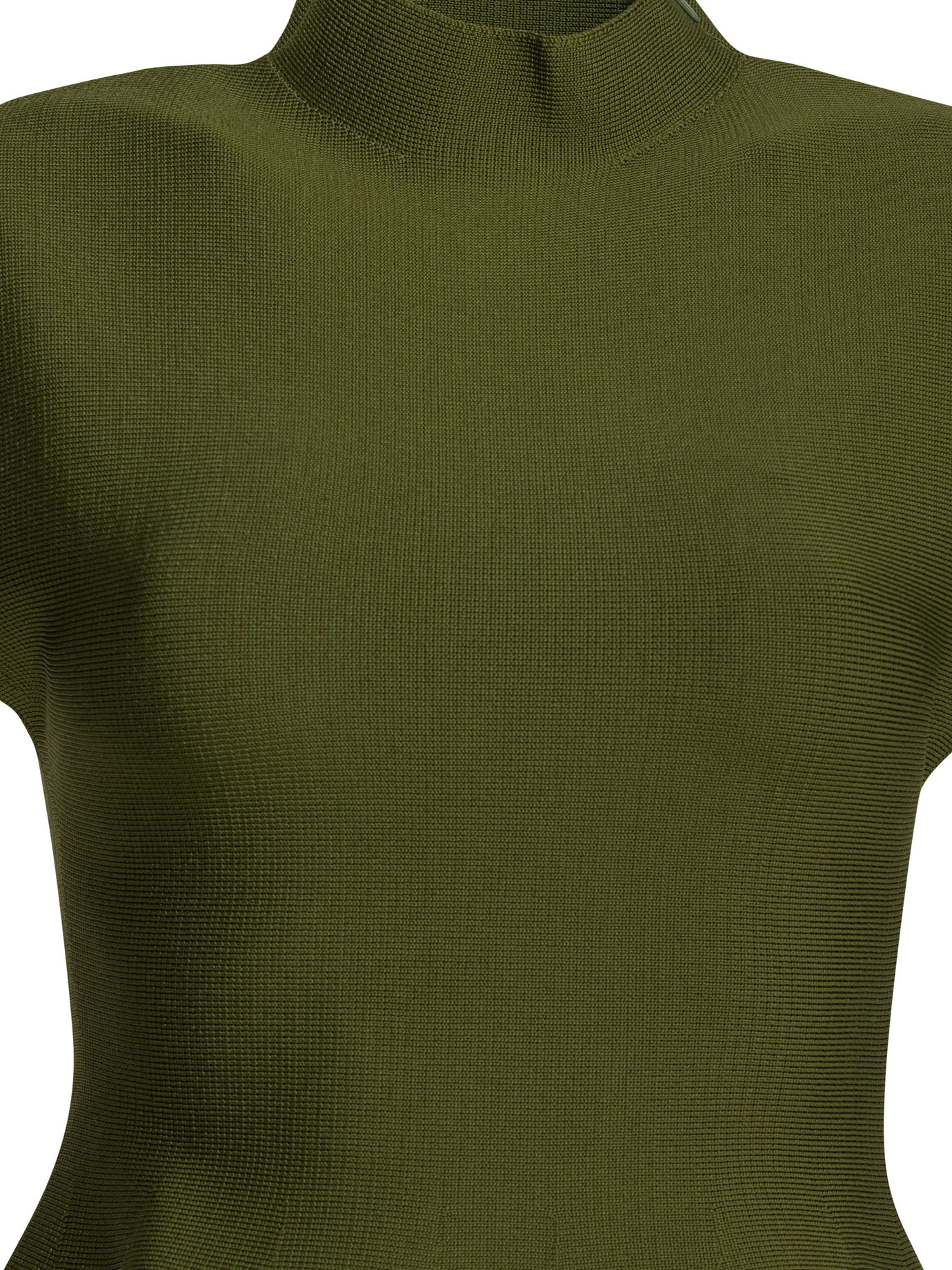 cette pièce de la maison khaite pour femme est un vêtement de prêt-à-porter au design sculptural et raffiné conçu pour la saison printemps-été 2026. fabriquée en italie, elle est confectionnée dans un mélange de viscose de première qualité (85 %), de polyamide (13 %) et d’élasthanne (2 %), offrant une structure compacte, une main lisse et une excellente tenue propre aux standards de la haute manufacture italienne khaite. sa silhouette « andra » se distingue par sa coupe peplum et son tricotage en maille milano, alliant l’esthétique minimaliste de la griffe à une fonctionnalité idéale pour vos tenues de prestige quotidiennes. le design au coloris vert présente une construction soignée avec un col montant et un cintrage marqué à la taille, signature du prestige et de l’identité visuelle de la maison khaite axée sur la précision des volumes. la structure inclut des manches courtes et une fermeture éclair latérale discrète, garantissant une silhouette équilibrée, une grande liberté de mouvement et un confort de porter exemplaire. ce modèle allie parfaitement la noblesse d’une fibre artificielle sélectionnée à une ingénierie de tricotage de luxe, constituant une pièce de collection indispensable pour votre vestiaire de saison.