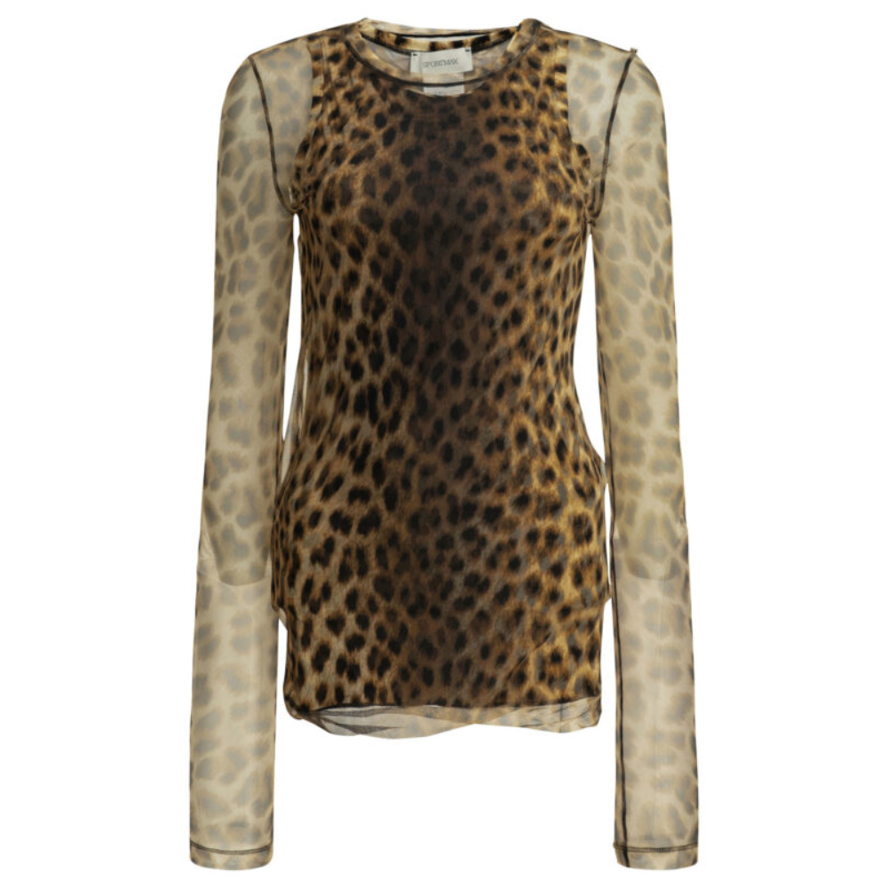 ce top de la ligne sportmax de la maison max mara pour femme est une pièce de prêt-à-porter à l’esthétique audacieuse et texturée conçue pour la saison printemps-été 2026. fabriqué en italie, il est doté d’une double structure sophistiquée combinant un extérieur en tulle léger et une doublure interne en jersey de type bas (stocking jersey) pour un confort seconde peau. sa silhouette adopte une coupe très ajustée (slim fit) avec des manches longues et une encolure arrondie aux finitions nettes, mettant en valeur les lignes du corps. le design se distingue par son imprimé animalier intégral sur le tulle transparent, créant des jeux de superposition et de transparence subtils sur les bras. la construction intègre des matières hautement extensibles (élasthanne) et des coutures plates pour une fluidité de mouvement optimale. ce modèle au coloris marron terre (001) allie parfaitement le dynamisme graphique du motif zébré au raffinement technique de la griffe italienne, constituant une pièce forte pour un vestiaire féminin contemporain.