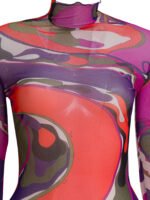 Ce t-shirt Pucci pour femme se distingue par son imprimé Orchidee emblématique qui recouvre l’ensemble du vêtement avec un motif graphique vibrant. Confectionné en tulle extensible léger et semi-transparent, il épouse la silhouette tout en offrant confort et liberté de mouvement. Sa coupe ajustée, ses manches longues et son col montant créent une allure élégante et contemporaine. Cette pièce raffinée reflète parfaitement l’univers coloré et sophistiqué de la maison Pucci pour la saison automne-hiver.