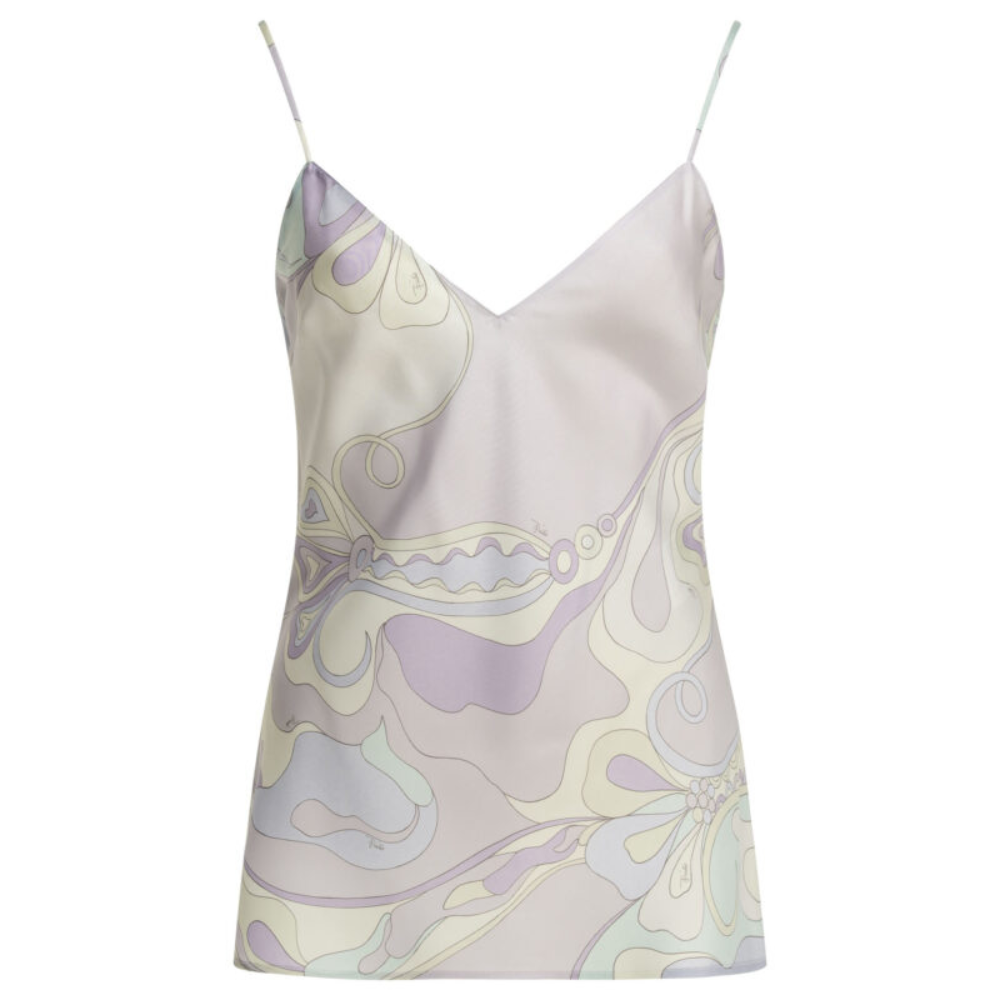 « Pucci » top femme violet en twill de soie à imprimé floral et bretelles fines