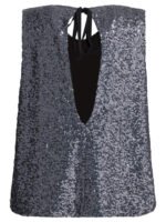 Ce top trapèze Semper pour femme séduit par son allure lumineuse et contemporaine. Entièrement recouvert de sequins appliqués sur une base textile texturée, il offre un éclat sophistiqué idéal pour la saison printemps/été 2026. Sa coupe en ligne A sans manches et sa silhouette fluide assurent un tombé élégant et confortable. L’encolure ronde épurée à l’avant est complétée par un profond décolleté en V inversé au dos avec lien à nouer, tandis que la doublure intérieure garantit opacité et confort.