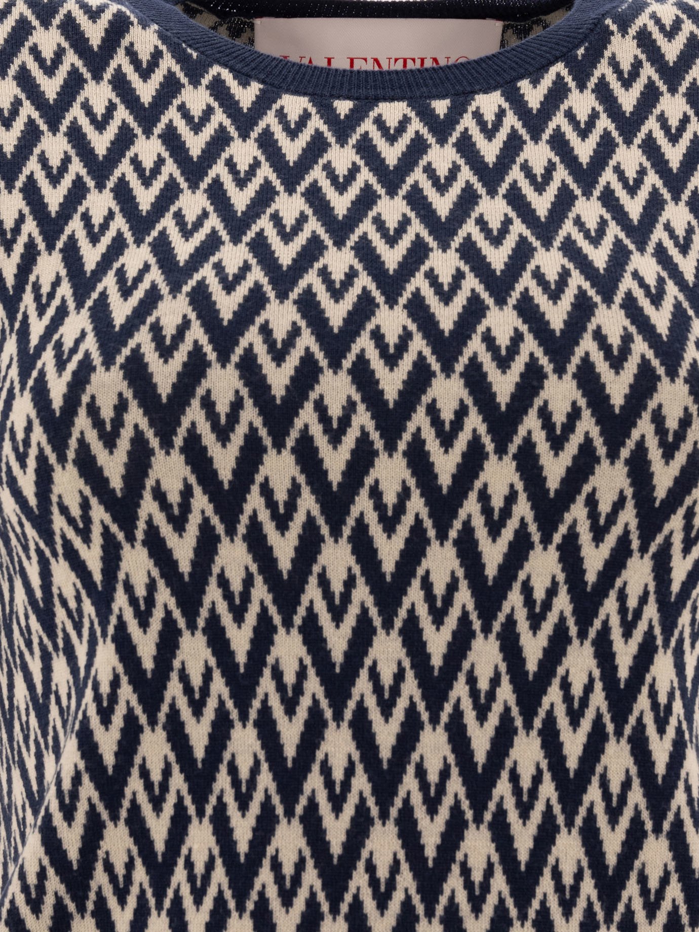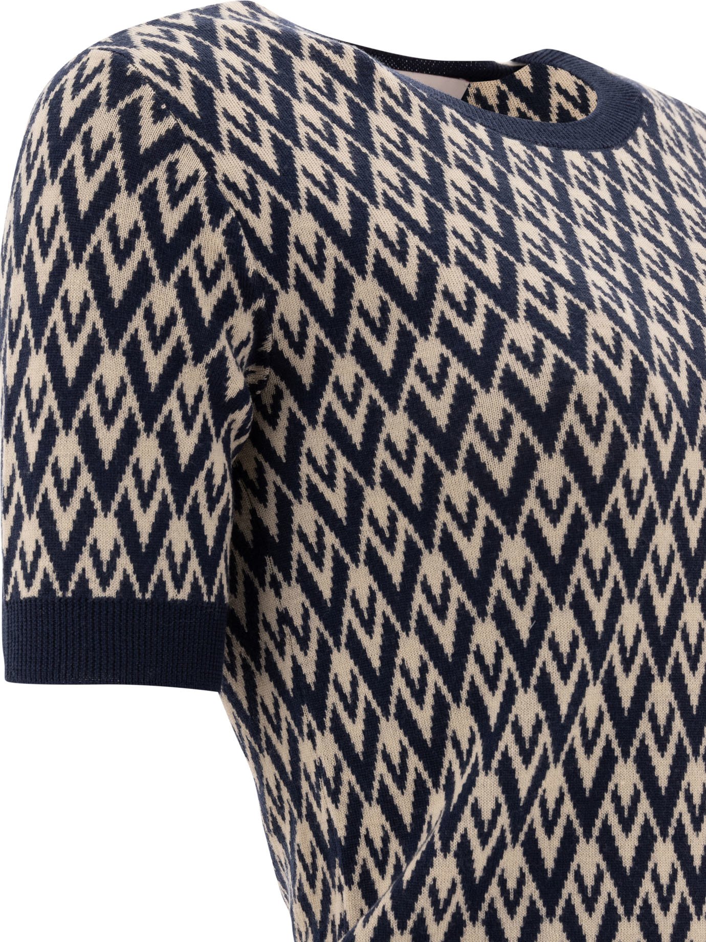 « Valentino » t-shirt femme bleu et beige en laine vierge