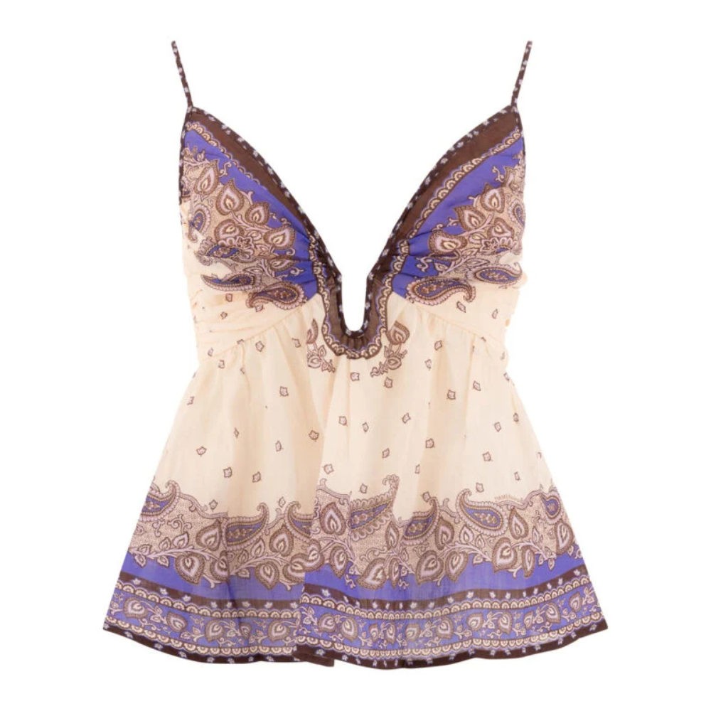 « Zimmermann » top Maxine Plunge Cami femme blanc et violet en ramie coupe regular