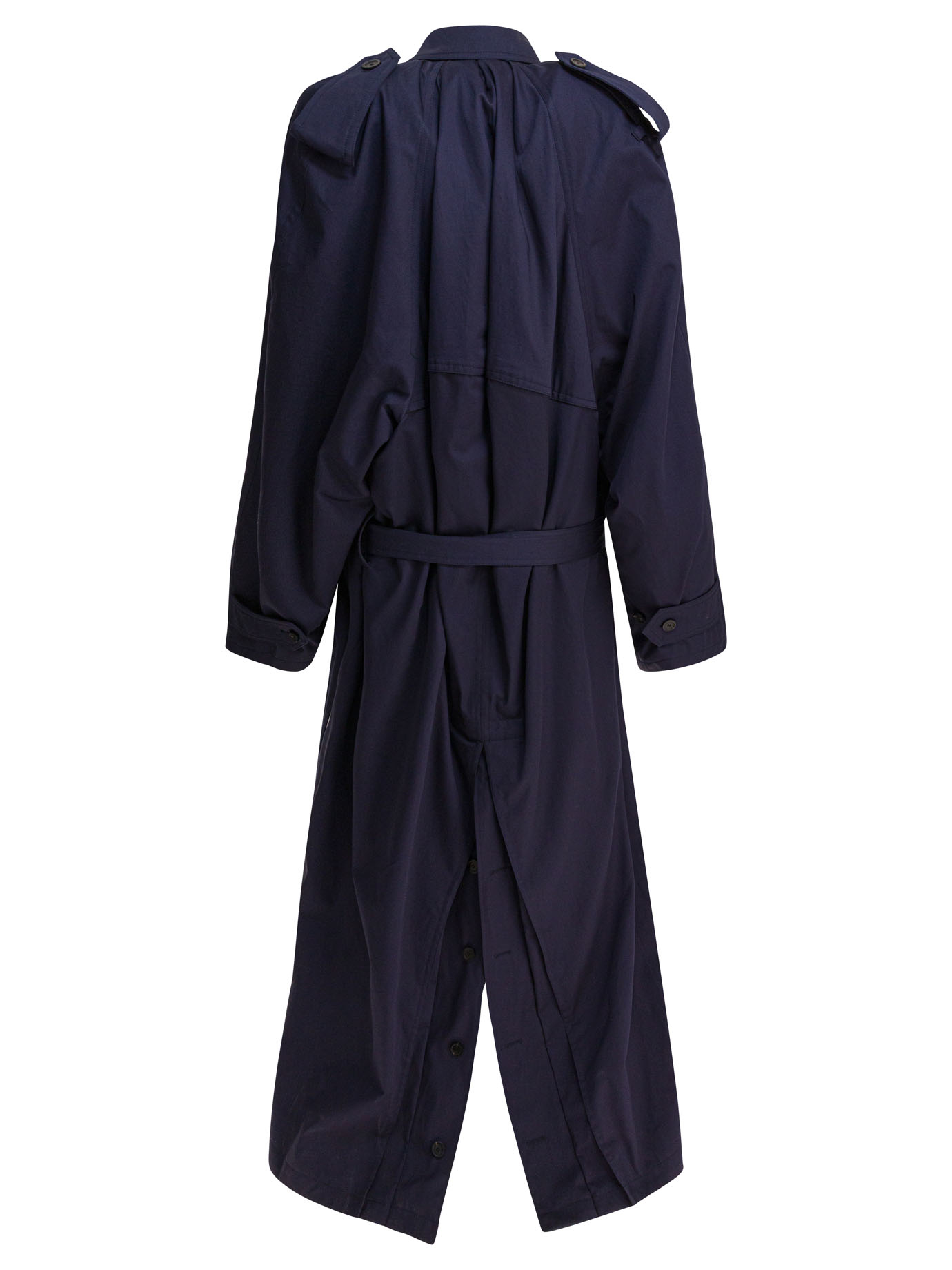 Ce trench-coat Balenciaga pour femme séduit par une esthétique épurée et une construction soignée, fidèle à l’approche contemporaine de la maison. Confectionné en coton à texture compacte, il présente une coupe droite et structurée qui souligne une silhouette nette et définie. Sa fermeture croisée à boutons-pression et sa ceinture ajustable ton sur ton permettent un ajustement précis et fonctionnel. Le col drapé apporte une touche d’élégance fluide, tandis que les finitions sartoriales et les surpiqûres précises renforcent son allure sophistiquée. Une pièce intemporelle, idéale pour la saison automne-hiver.