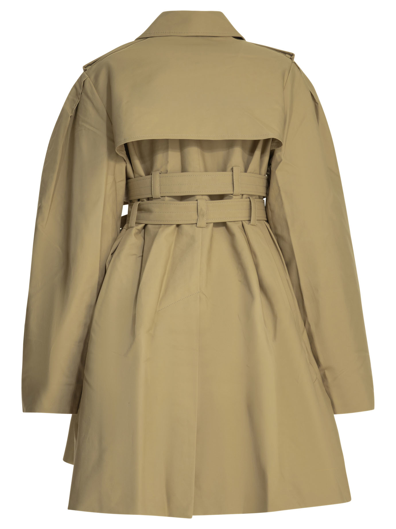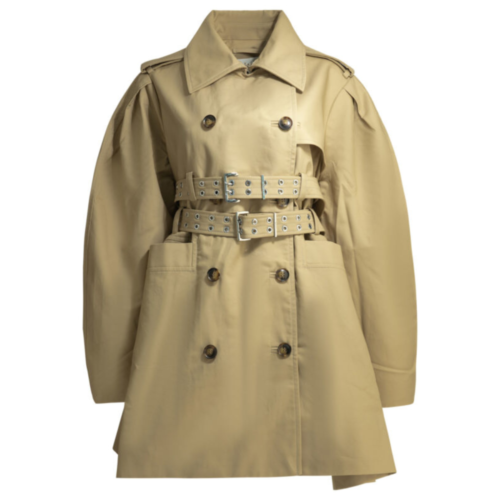 « Ganni » trench femme beige en coton à silhouette peplum et boutonnage croisé