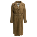 Le trench « Peggy » Golden Goose pour femme est confectionné en cuir ovin suédé avec un traitement ciré effet usé, apportant caractère et profondeur à la matière. Sa silhouette régulière est structurée par une ceinture coordonnée à la taille qui souligne la ligne féminine. Les finitions à bords francs mettent en valeur l’esthétique artisanale, tandis que la fermeture frontale à effet dissimulé conserve une allure épurée. Les détails en corne ton sur ton sur les boutons et la boucle, ainsi que la double étoile appliquée au dos, signent cette pièce iconique idéale pour la saison printemps/été 2026.