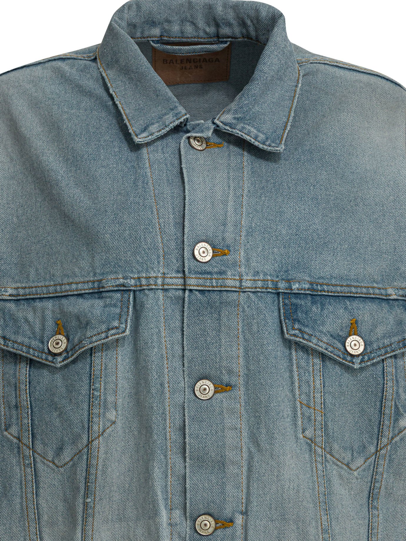 Cette veste en jean Balenciaga pour femme revisite un classique du vestiaire avec une approche contemporaine. Confectionnée en denim de coton, elle présente un col chemise et une fermeture frontale composée de six boutons gravés du logo Balenciaga. Deux poches plaquées sur la poitrine et deux poches latérales apportent fonctionnalité et structure à la silhouette. Au dos, un motif inspiré du masking tape signe l’esthétique distinctive de la maison, tandis que les pattes de serrage ajustables à la taille permettent d’adapter la coupe.