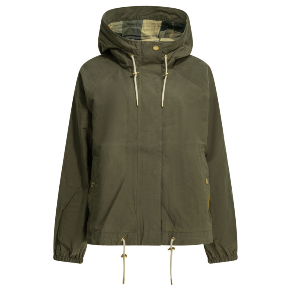 ce vêtement de pluie de la maison barbour pour femme est une pièce de prêt-à-porter au design fonctionnel et féminin conçue pour la saison printemps-été 2026. fabriqué au vietnam, il est confectionné dans un mélange de coton (70 %) et de polyamide (30 %), offrant une structure légère, respirante et résistante aux intempéries légères de la mi-saison. sa silhouette se distingue par une coupe évasée (flared) et des manches longues, apportant une allure moderne et une grande liberté de mouvement. le design au coloris vert (ol72) présente une construction soignée avec une capuche ajustable par un cordon de serrage en coton et un ourlet muni d’un lien assorti pour varier le volume selon vos envies. la structure inclut une doublure intérieure en mélange de polyester et de coton (65 % / 35 %) avec une finition en tartan emblématique à l’intérieur de la capuche, ainsi que des poches passepoilées sécurisées par des boutons-pression. ce modèle allie parfaitement l’héritage britannique de la marque à une silhouette contemporaine et pratique, constituant un indispensable protecteur pour votre vestiaire de saison.