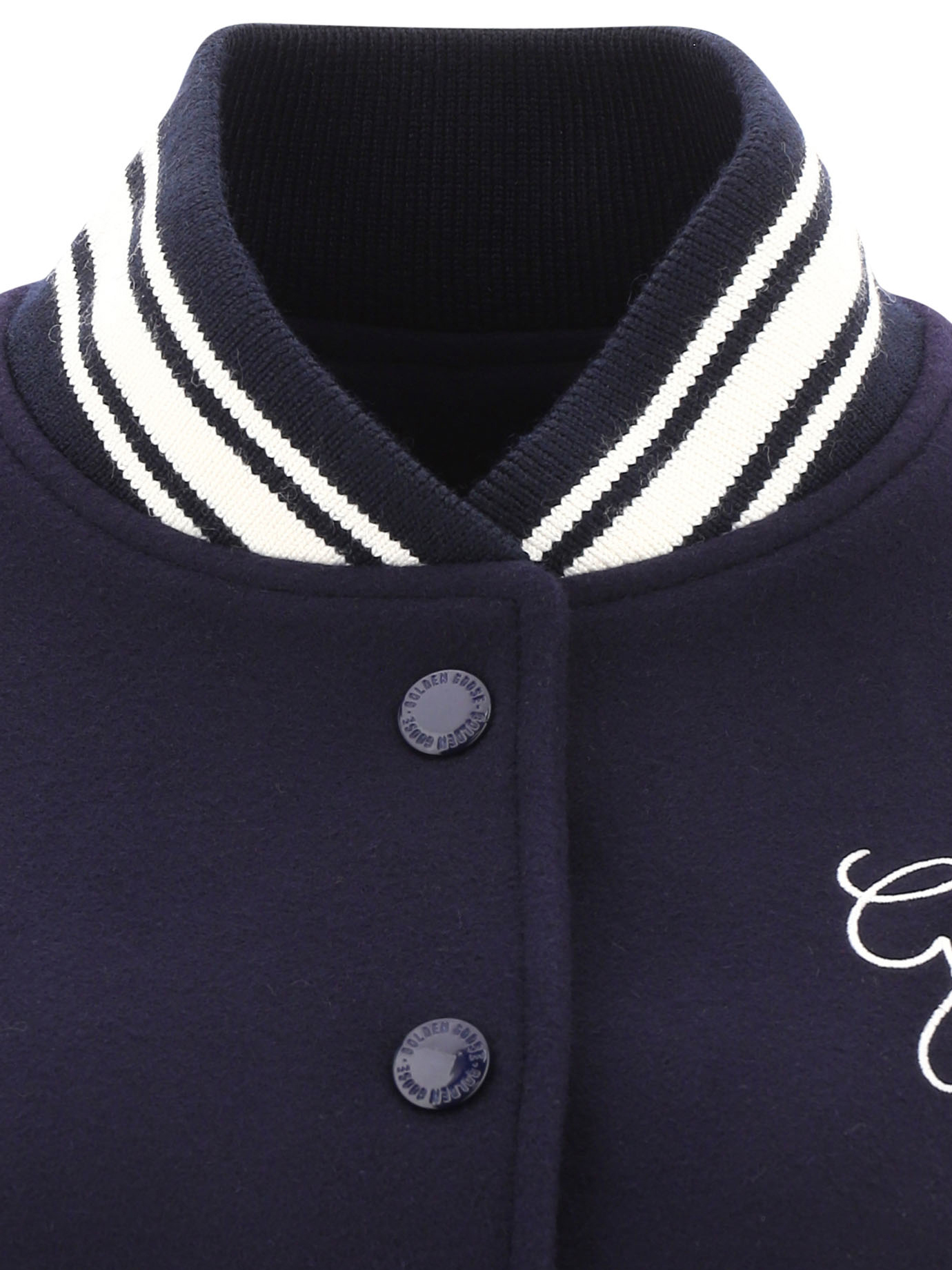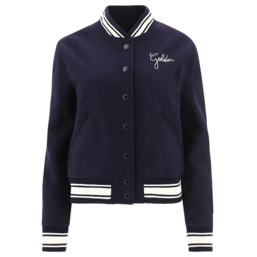 ce blouson de la maison golden goose pour femme est une pièce de prêt-à-porter au design athlétique et sophistiqué conçue pour la saison printemps-été 2026. fabriqué en italie, il est principalement confectionné dans un mélange de laine vierge de première qualité (72 %) et de polyamide (28 %), offrant une structure compacte, une chaleur thermorégulatrice et une grande douceur propre aux standards de la haute manufacture vénitienne. sa silhouette se distingue par une coupe régulière (regular fit) et une ligne cintrée, alliant l’esthétique « varsity » de la griffe à une élégance urbaine idéale pour vos tenues de prestige. le design au coloris bleu marine présente une construction soignée avec des détails contrastés et une double application d’étoiles dorées au dos, signature du prestige et de l’identité iconographique de golden goose. la structure inclut une doublure de corps en pur coton (100 %) et des manches doublées en mélange de viscose et d’acétate, ainsi qu’une fermeture frontale boutonnée et des poches insérées, garantissant une isolation optimale et une tenue de forme exemplaire. ce modèle allie parfaitement la noblesse d’une fibre naturelle à une ingénierie de coupe moderne, constituant un essentiel de luxe pour votre vestiaire.