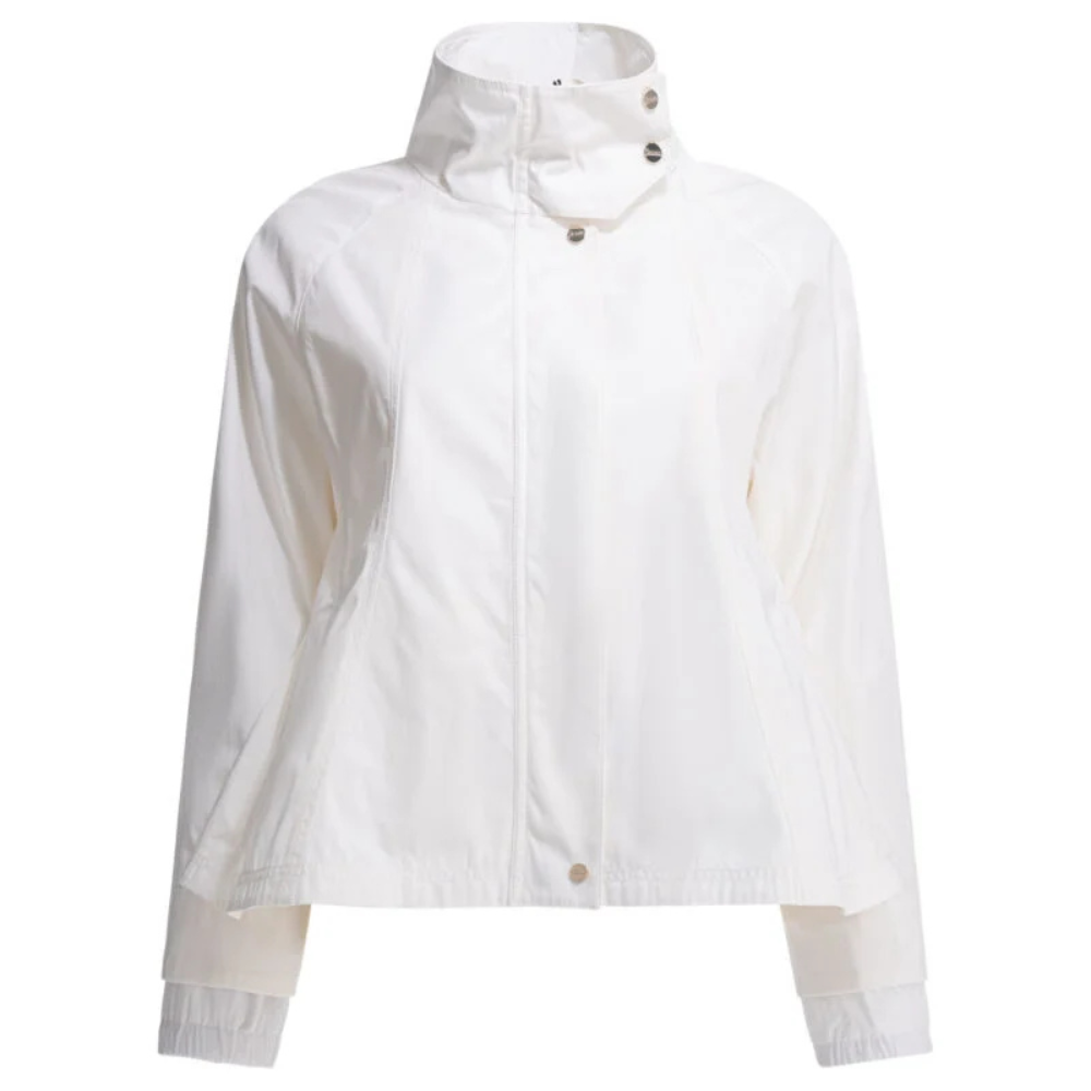 Cette veste imperméable Herno pour femme allie élégance minimaliste et performance technique pour la saison printemps-été. Confectionnée en gabardine de coton teint avec traitement anti-goutte, elle offre une protection efficace tout en conservant une allure raffinée. Les détails en taffetas déperlant à finition légèrement irisée apportent une touche moderne, tandis que le col montant structuré et la fermeture pressionnée avec zip dissimulé renforcent sa fonctionnalité. Sa silhouette évasée vers le bas et sa doublure complète assurent confort et sophistication au quotidien.