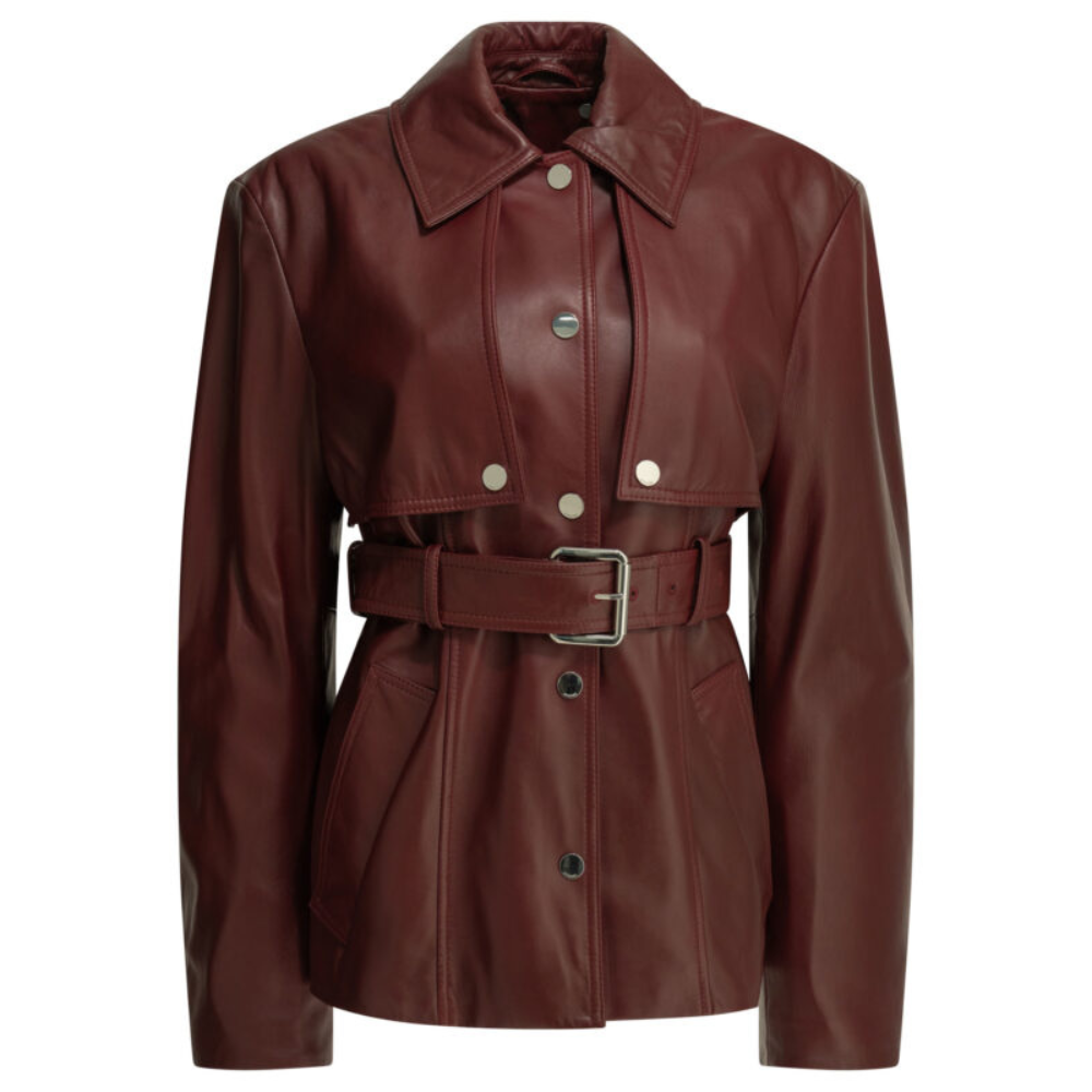 « Max mara sportmax » veste femme bordeaux en cuir nappa à ceinture