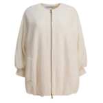 Ce blouson Max Mara pour femme en laine et cachemire blanc combine chaleur, confort et élégance. Conçu avec des manches kimono larges et une coupe décontractée, il s’impose comme une pièce raffinée et polyvalente, adaptée aussi bien au quotidien qu’aux moments plus habillés. Sa fermeture zippée à double curseur, ses poches passepoilées à la taille et ses finitions côtelées aux poignets soulignent son style moderne. Le bas froncé et l’étiquette en cuir siglée à l’arrière apportent une touche contemporaine, fidèle au savoir-faire italien de la maison.