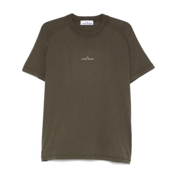 « Stone Island » T-shirt marron en coton à logo imprimé pour homme Slim Fit