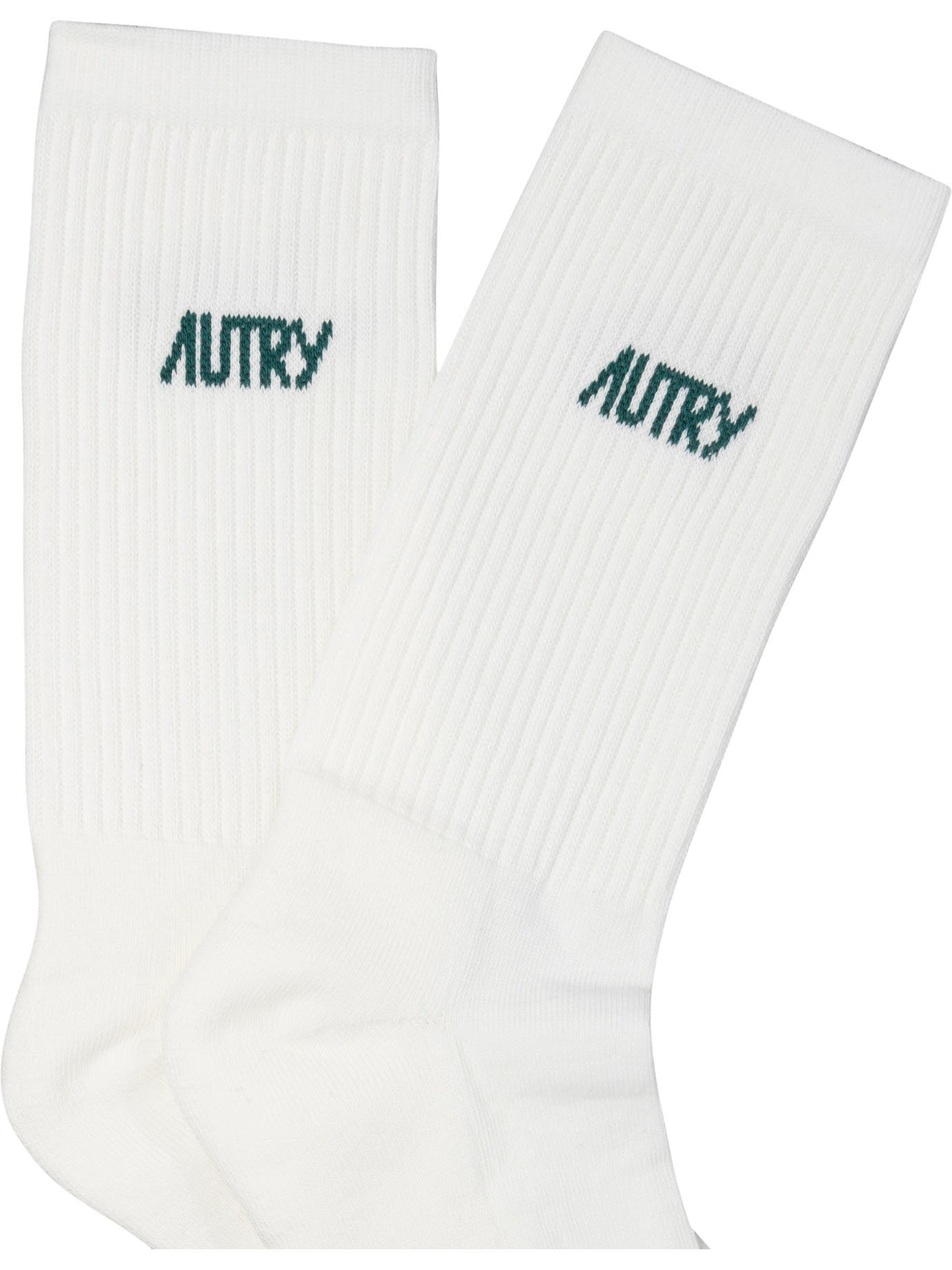 « Autry » chaussettes homme blanches à logo jacquard en coton