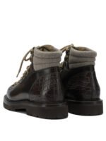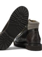 Les chaussures Brunello Cucinelli pour homme s’inspirent de l’univers outdoor avec une esthétique élégante et raffinée. Confectionnées en cuir de veau à effet lisse, elles présentent une silhouette structurée avec un bout arrondi qui assure confort et modernité. Le laçage frontal permet un ajustement précis, tandis que le renfort contrastant au talon souligne le caractère du modèle. La semelle en caoutchouc garantit adhérence et durabilité, faisant de cette paire une option idéale pour la saison automne-hiver.