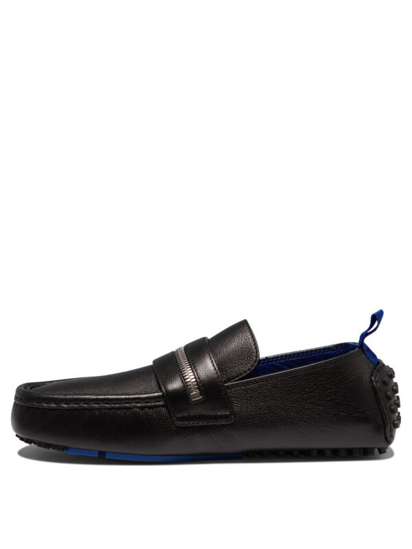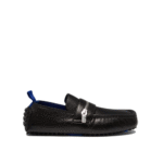 Les mocassins homme Burberry Motor incarnent l’élégance intemporelle alliée à une touche contemporaine. Confectionnés en cuir noir de qualité, ils se distinguent par leur bout arrondi, leur languette arrière et leur détail zippé qui modernise la silhouette classique. Leur semelle en caoutchouc assure confort et durabilité, faisant de ce modèle un choix idéal aussi bien pour des tenues habillées que pour des looks plus décontractés. Raffinés et polyvalents, ces mocassins représentent parfaitement l’alliance du style traditionnel et de l’esthétique urbaine moderne.