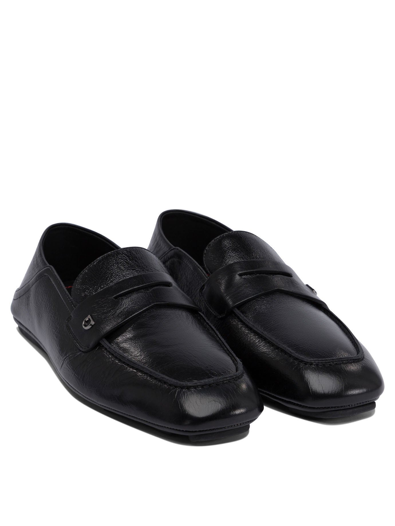 Ces mocassins noirs signés Ferragamo incarnent l’élégance intemporelle de la maison italienne. Confectionnés en cuir de haute qualité, ils se distinguent par leur raffinement et leur confort. La semelle mélangeant caoutchouc et cuir assure souplesse et résistance, idéale pour un port quotidien tout en conservant une allure sophistiquée.