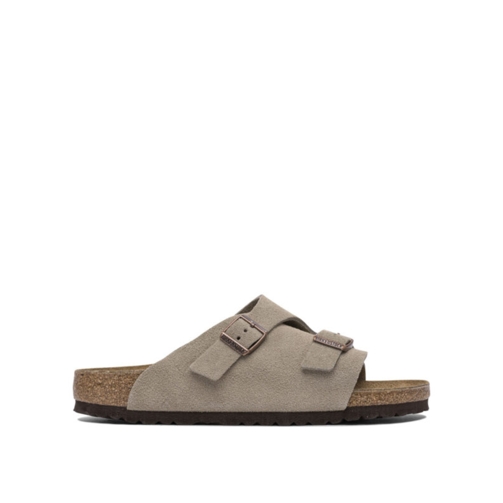 ce sabot de la maison birkenstock pour homme est une pièce de chaussure au design iconique et anatomique conçue pour la saison printemps-été 2026. fabriqué en allemagne, il est intégralement confectionné avec une tige en cuir suédé de première qualité (100 %), offrant une structure souple, une texture veloutée et un confort enveloppant dès le premier porté. sa silhouette se distingue par le modèle « zurich », qui allie la stabilité d’une chaussure fermée à la légèreté d’une sandale grâce à ses deux larges brides croisées, mariant l’esthétique vintage des années 1960 à une fonctionnalité orthopédique de pointe. le design au coloris beige taupe présente une construction soignée avec un lit de pied en liège et latex moulé qui épouse les contours naturels du pied pour un soutien optimal tout au long de la journée. la structure inclut deux boucles métalliques réglables individuellement pour un ajustement personnalisé, une doublure d’assise plantaire en suède ainsi qu’une semelle extérieure en matériau synthétique (100 % caoutchouc/eva) garantissant une parfaite adhérence. ce modèle allie parfaitement la noblesse des matières naturelles à une ingénierie de confort légendaire, constituant un essentiel de prestige pour votre vestiaire de saison.