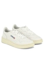 Les baskets Autry « Medalist Low » incarnent l’esthétique rétro inspirée du tennis des années 80, revisitée avec une approche contemporaine. Confectionnées en cuir nappa de vache particulièrement souple, elles offrent une texture uniforme et un confort remarquable. La tige présente un bout perforé pour favoriser la respirabilité, accompagné de lacets plats en coton et d’un col rembourré pour un maintien optimal. La doublure associant cuir et éponge de coton assure douceur et confort, tandis que la semelle en caoutchouc garantit stabilité et adhérence.
