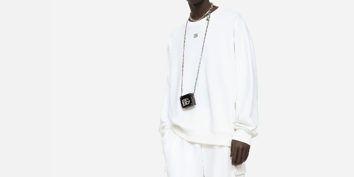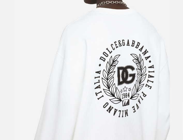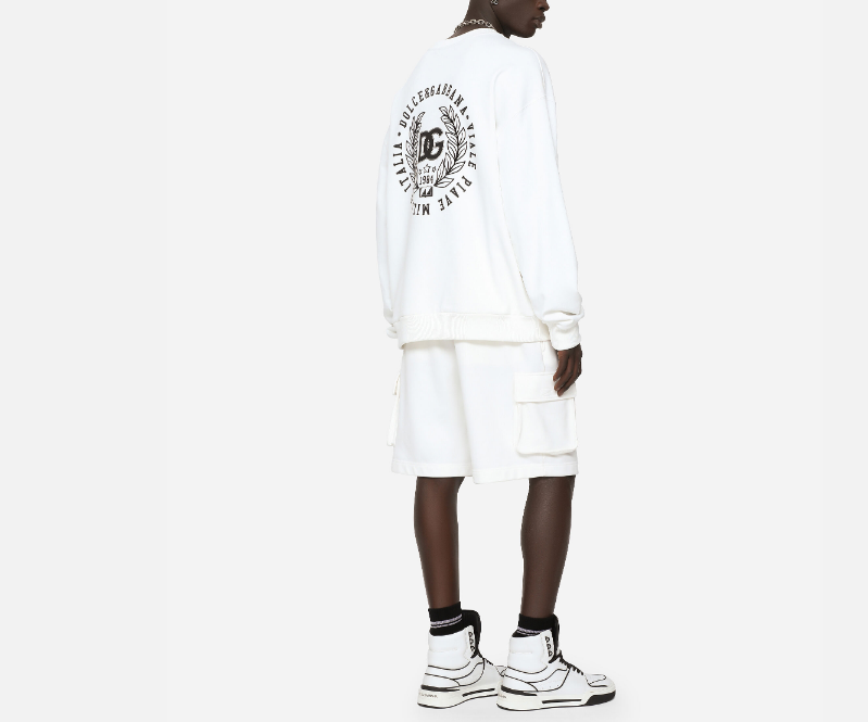 ce sweat-shirt de la maison dolce & gabbana pour homme est une pièce de prêt-à-porter au design graphique et luxueux conçue pour la saison printemps-été 2026. fabriqué en italie, il est intégralement confectionné dans un jersey de coton de première qualité (100 %), offrant une structure souple, une main douce et une excellente respirabilité propre aux standards de la haute manufacture de luxe italienne. issu de la collection « profondo sud », il se distingue par son volume généreux et son travail de marquage audacieux, alliant l’esthétique iconique de la griffe à une sophistication urbaine idéale pour vos tenues de prestige décontractées. le design au coloris blanc présente une construction soignée avec un logo dg en patchwork métallisé, signature du prestige et de l’identité visuelle de dolce & gabbana. la structure inclut des finitions en maille stretch et une silhouette ample, garantissant une silhouette équilibrée, une grande liberté de mouvement et un confort de porter exemplaire. ce modèle allie parfaitement la noblesse d’une fibre naturelle sélectionnée à une ingénierie de design créative, constituant une pièce de collection indispensable pour votre vestiaire.