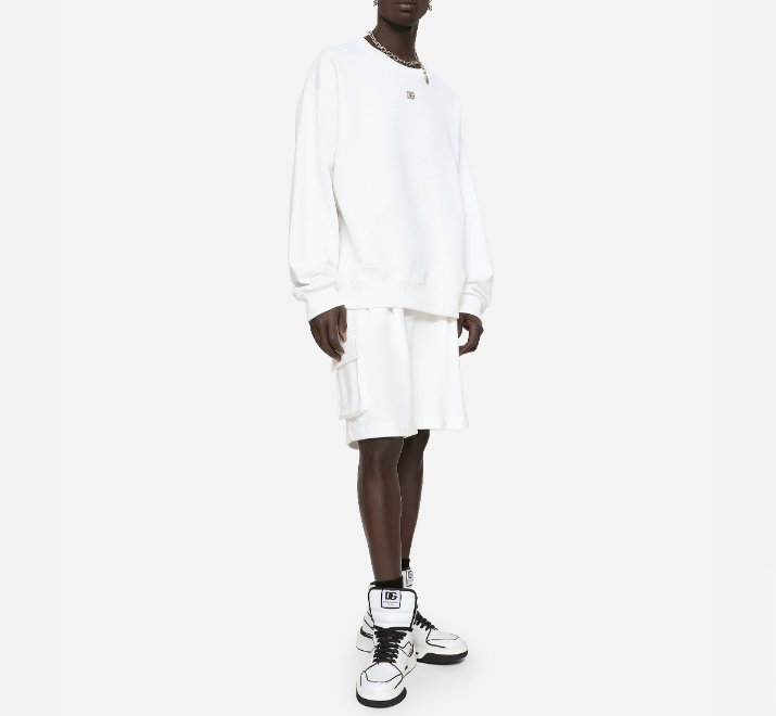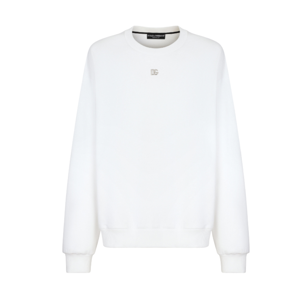 « Dolce & gabbana » sweat-shirt homme blanc oversize à col rond et logo dg métallisé