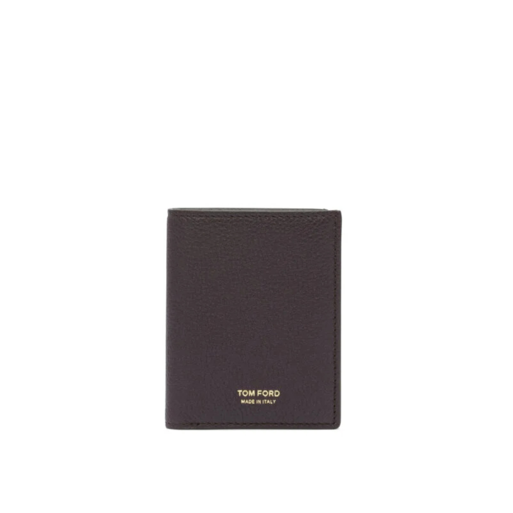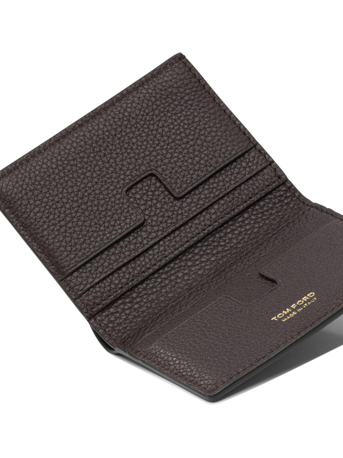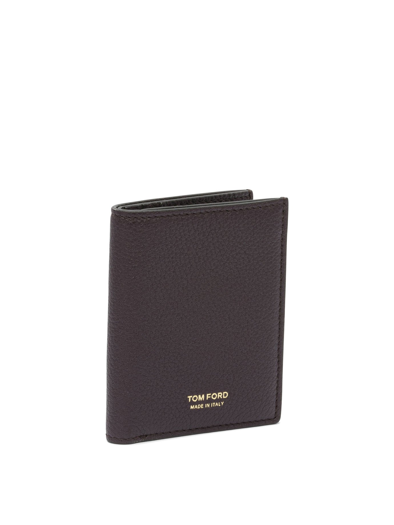 « Tom Ford » porte-cartes pliant homme bordeaux en cuir de veau « T Line »
