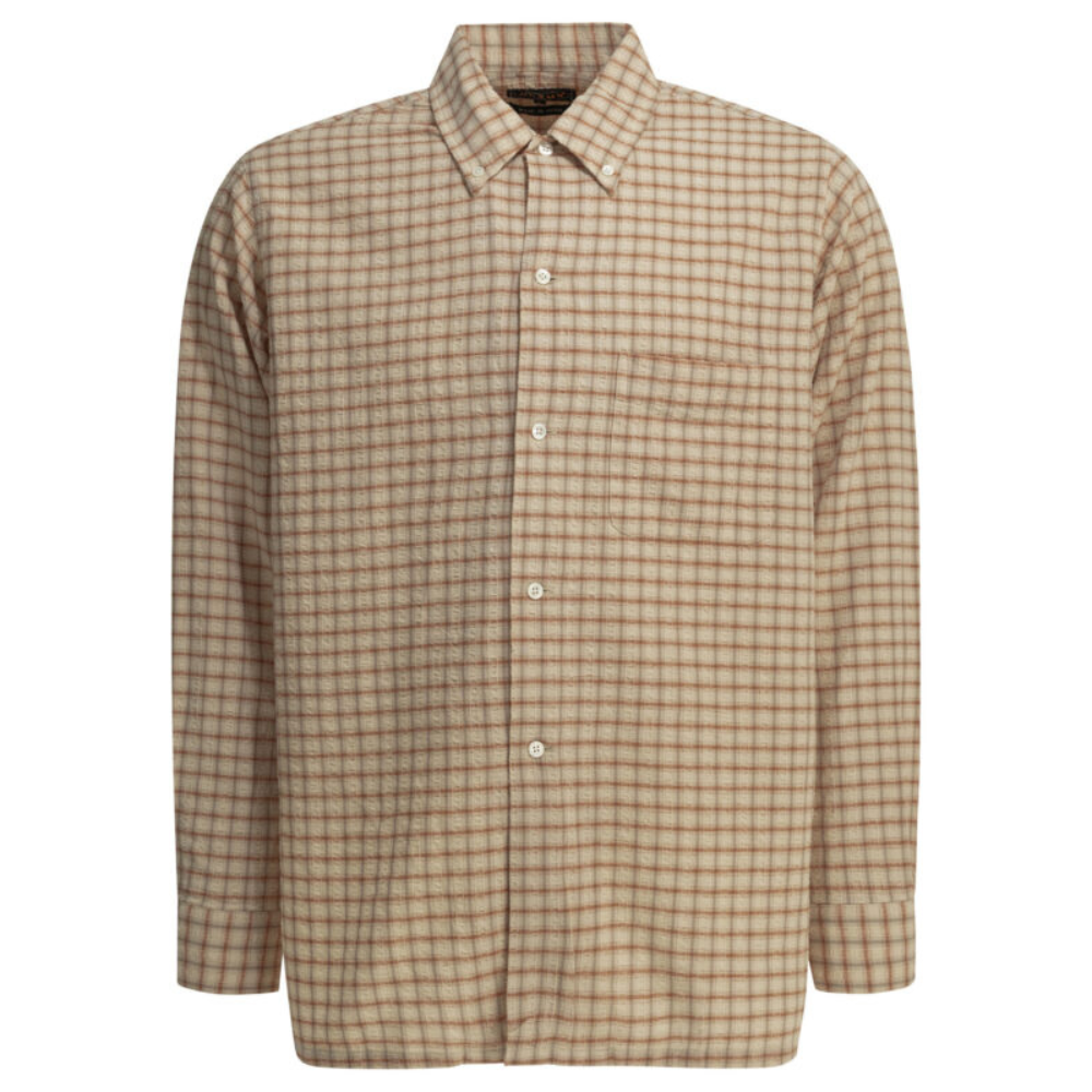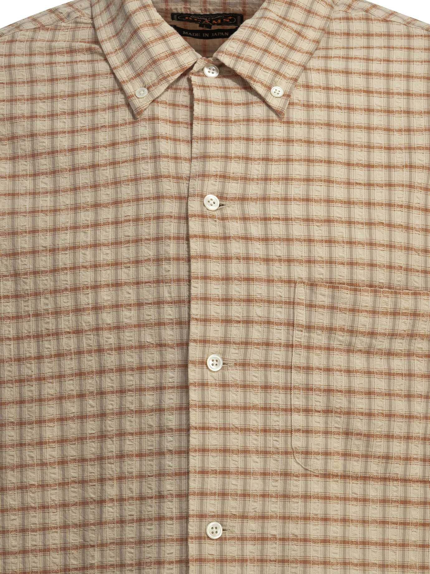 cette chemise de la maison beams plus pour homme est un vêtement de prêt-à-porter au design textural et rafraîchissant conçue pour la saison printemps-été 2026. fabriquée au japon, elle est confectionnée dans un mélange de coton et de lin de première qualité (86 % coton, 14 % lin), offrant une structure en seersucker, une main légère et une respirabilité naturelle propre aux standards de la haute manufacture japonaise beams plus. sa silhouette « open bd sucker » se distingue par son tissu à carreaux au fini gaufré et froncé, alliant l’esthétique preppy américaine de la griffe à une technicité textile idéale pour vos tenues de prestige estivales. le design au coloris orange présente une construction soignée avec une armure froissée qui limite le contact avec la peau, signature du prestige et de l’identité visuelle de beams plus. la structure inclut un col button-down ouvert et une poche poitrine fonctionnelle, garantissant une silhouette équilibrée, une grande liberté de mouvement et un confort de porter exemplaire. ce modèle allie parfaitement la noblesse des fibres naturelles sélectionnées à une ingénierie de tissage sophistiquée, constituant une pièce de collection indispensable pour votre vestiaire.
