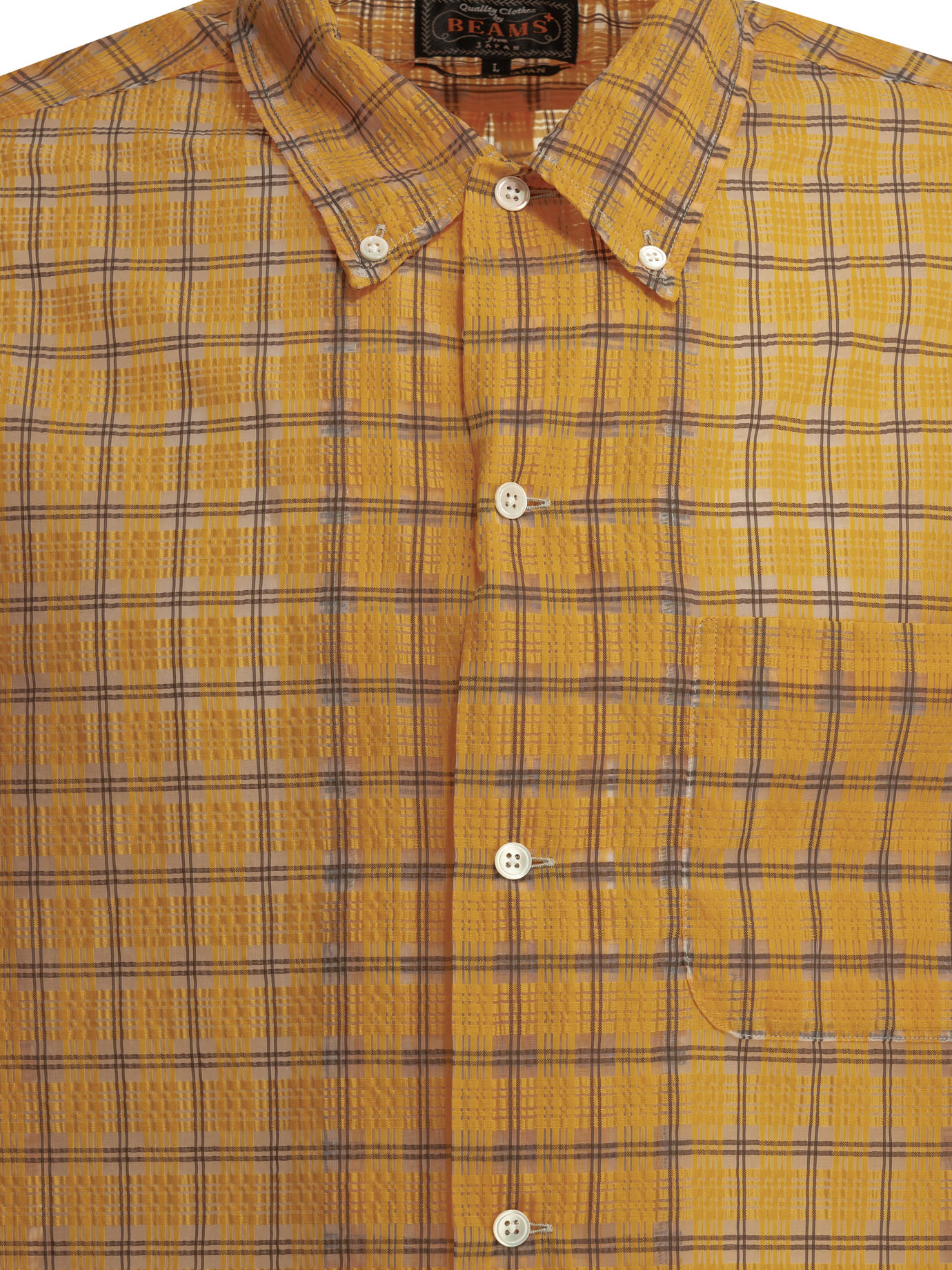 cette chemise de la maison beams plus pour homme est un vêtement de prêt-à-porter au design technique et graphique conçue pour la saison printemps-été 2026. fabriquée au japon, elle est intégralement confectionnée dans un nylon de première qualité au tissage serré (100 %), offrant une structure compacte, une main lisse et une légèreté exceptionnelle propre aux standards de la haute manufacture japonaise beams plus. sa silhouette « open db nylon airy plaid » se distingue par son motif à carreaux distribué avec précision et sa surface technique, alliant l’esthétique preppy de la griffe à une innovation textile idéale pour vos tenues de prestige estivales. le design au coloris orange présente une construction soignée avec une texture aérée, signature du prestige et de l’identité visuelle de beams plus. la structure inclut un col classique boutonné et un ourlet légèrement arrondi, garantissant une silhouette équilibrée, une grande liberté de mouvement et un confort de porter exemplaire. ce modèle allie parfaitement la noblesse d’une fibre synthétique sélectionnée à une ingénierie de tissage haute performance, constituant une pièce de collection indispensable pour votre vestiaire.