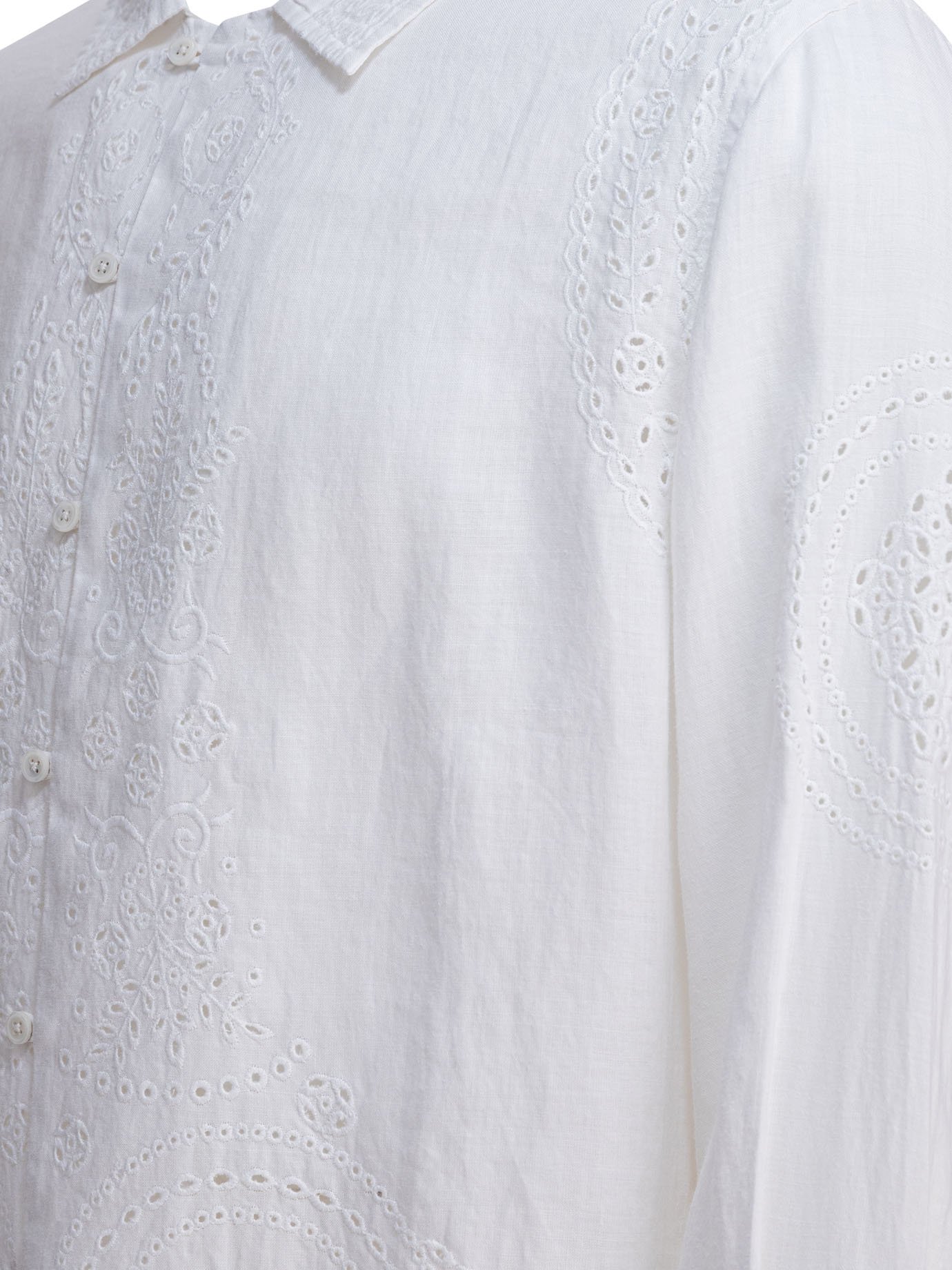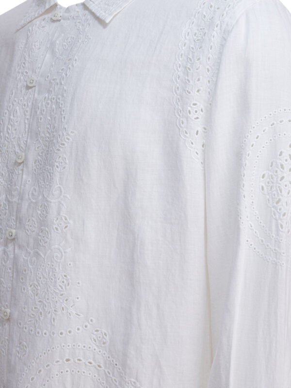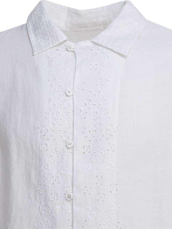 Cette chemise blanche pour homme signée Bode incarne l’élégance artisanale et l’esprit vintage propre à la marque. Confectionnée en Inde en lin 100 %, elle offre une texture légère et respirante, idéale pour la saison printemps-été. Avec sa coupe fluide et son design intemporel, elle se porte aussi bien de manière décontractée que plus habillée, pour un style raffiné aux accents nostalgiques.