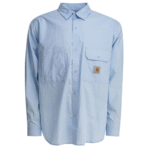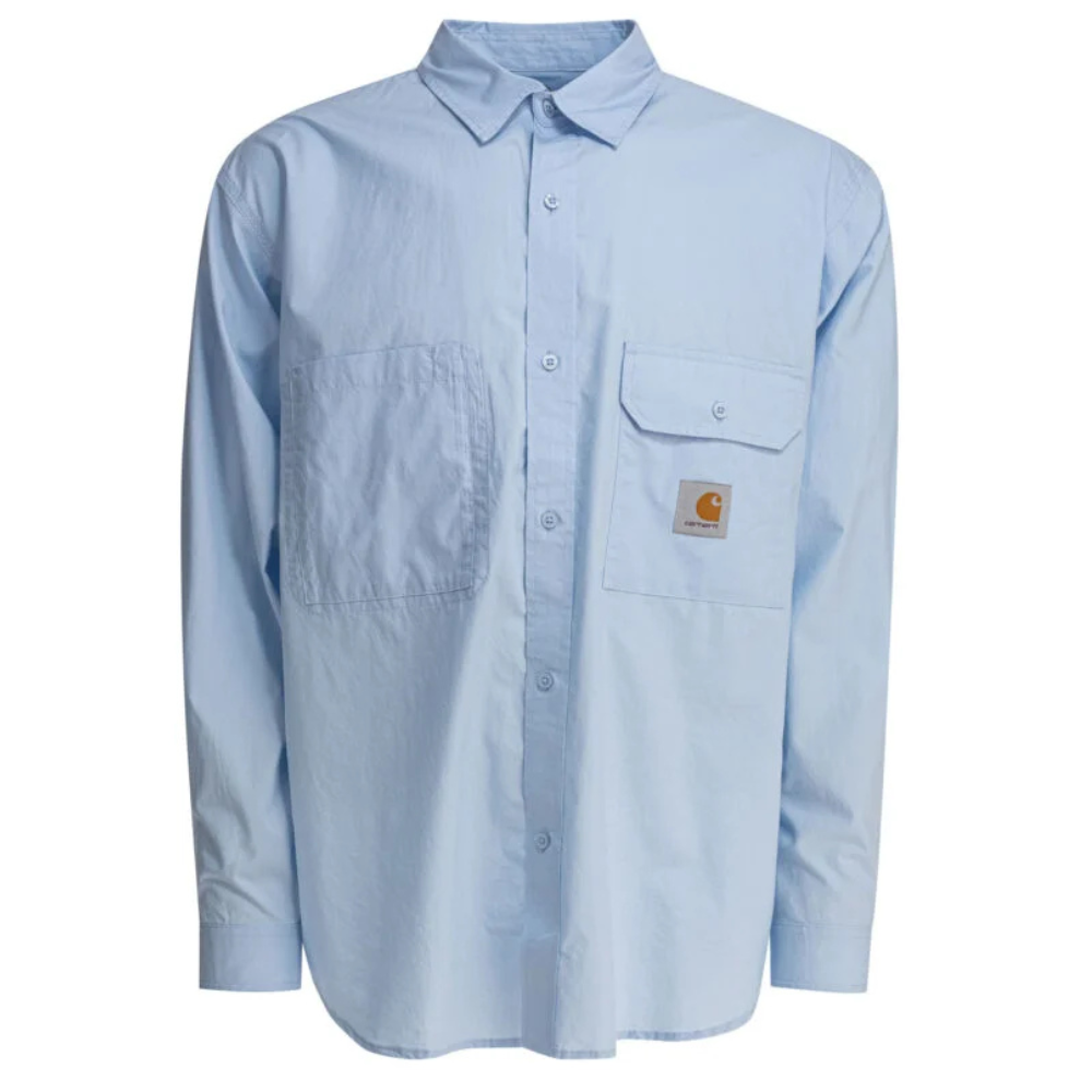 La chemise homme bleu clair Carhartt WIP L/S Irwin Shirt allie confort et élégance décontractée. Confectionnée en popeline de coton légère, elle se distingue par sa coupe oversize qui apporte une allure moderne et fluide. Les deux poches poitrine à rabat avec boutons-pression dissimulés et l’étiquette carrée signature ajoutent une touche utilitaire raffinée. Parfaite pour composer un look urbain et contemporain, cette chemise se porte aussi bien avec un jean qu’avec un pantalon habillé.