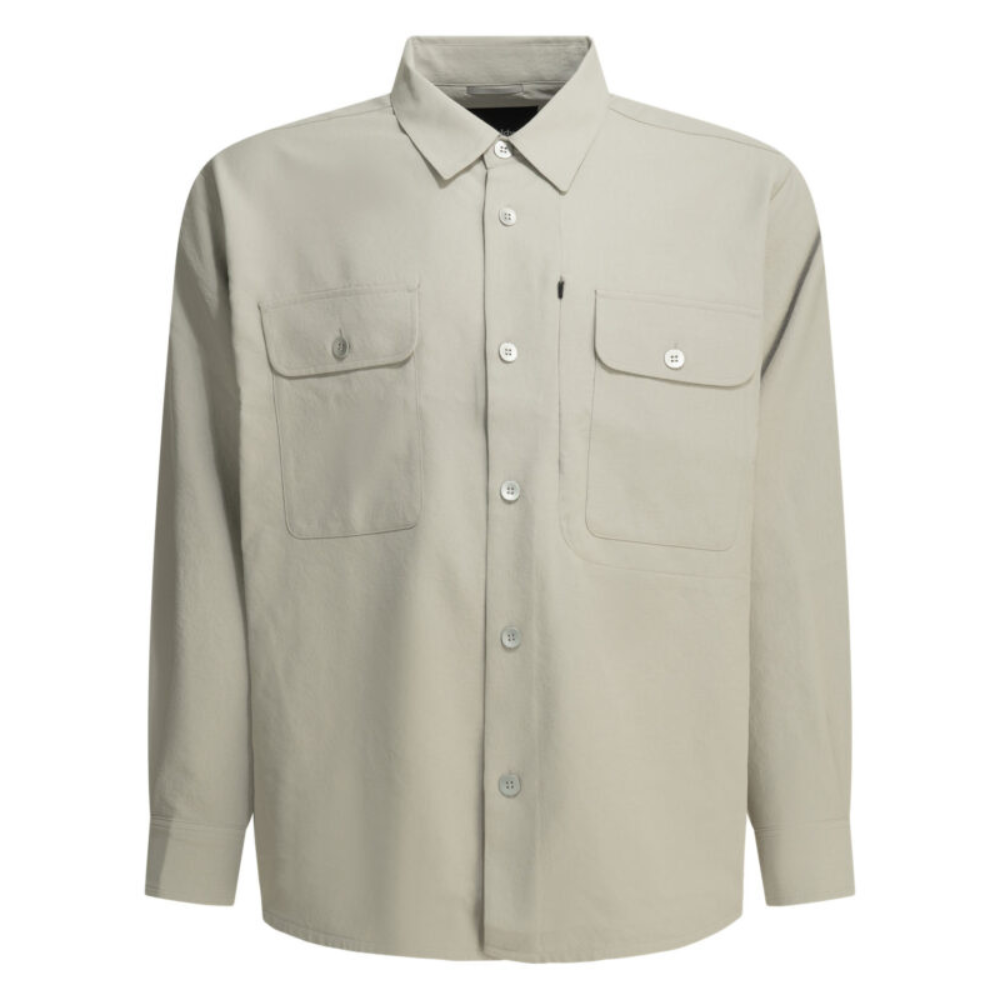 cette chemise décontractée de la maison goldwin pour homme est une pièce de prêt-à-porter au design technique et minimaliste conçue pour la saison printemps-été 2026. fabriquée en chine, elle est intégralement confectionnée dans un textile de première qualité (100 % polyester) issu de fils recyclés, offrant une structure respirante, un toucher naturel et une durabilité propre aux standards de l’ingénierie textile japonaise. sa silhouette se distingue par une coupe carrée (boxy fit) et une ligne structurée, alliant l’esthétique fonctionnelle de la griffe à une allure urbaine idéale pour vos tenues de prestige. le design au coloris beige présente une construction soignée avec une protection uv certifiée selon la norme as/nzs 4399, signature du prestige et de l’innovation protectrice de goldwin. la structure inclut un col classique renforcé avec un détail de protection solaire à l’arrière, deux poches plaquées sur la poitrine dont une dissimulant une poche de sécurité zippée, et des boutons originaux en aluminium, garantissant une fonctionnalité optimale et un confort de porter exemplaire. ce modèle allie parfaitement la noblesse d’une fibre technique éco-responsable à une ingénierie de design de luxe, constituant un essentiel de haute performance pour votre vestiaire.