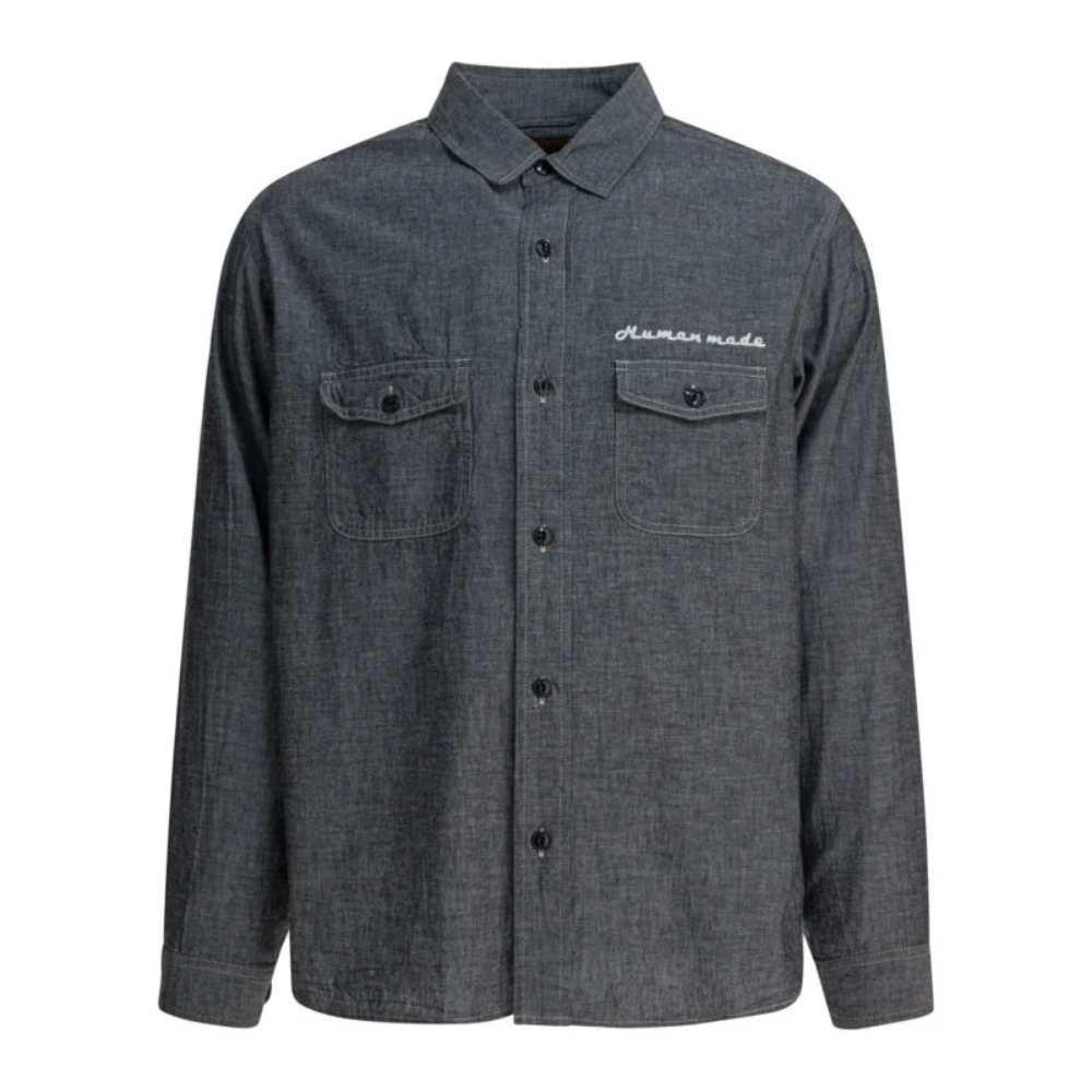 Cette chemise Human Made pour homme revisite la chemise chambray classique avec l’esthétique distinctive de la marque japonaise. Confectionnée en coton 100 %, elle offre une texture résistante et confortable adaptée à un usage quotidien. Sa coupe regular et ses manches longues assurent une silhouette équilibrée et polyvalente. Le motif brodé en point de chaînette au dos apporte une signature graphique forte, tandis que la poche poitrine est soulignée par le logo de la marque et un bouton en forme de cœur, détail emblématique de Human Made.