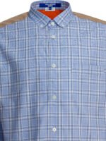 La chemise homme Junya Watanabe MAN à motif carreaux se distingue par sa construction à panneaux associant popeline de coton et empiècements matelassés en nylon taffetas. Son design structuré met en valeur un jeu de matières contrastées, avec des inserts en twill de coton sur les épaules et les manches. Le large col s’ouvre sur une fermeture boutonnée frontale, tandis que la poche plaquée poitrine et l’ourlet côtelé apportent une dimension fonctionnelle et contemporaine. Une pièce hybride fidèle à l’esthétique expérimentale de la maison japonaise.