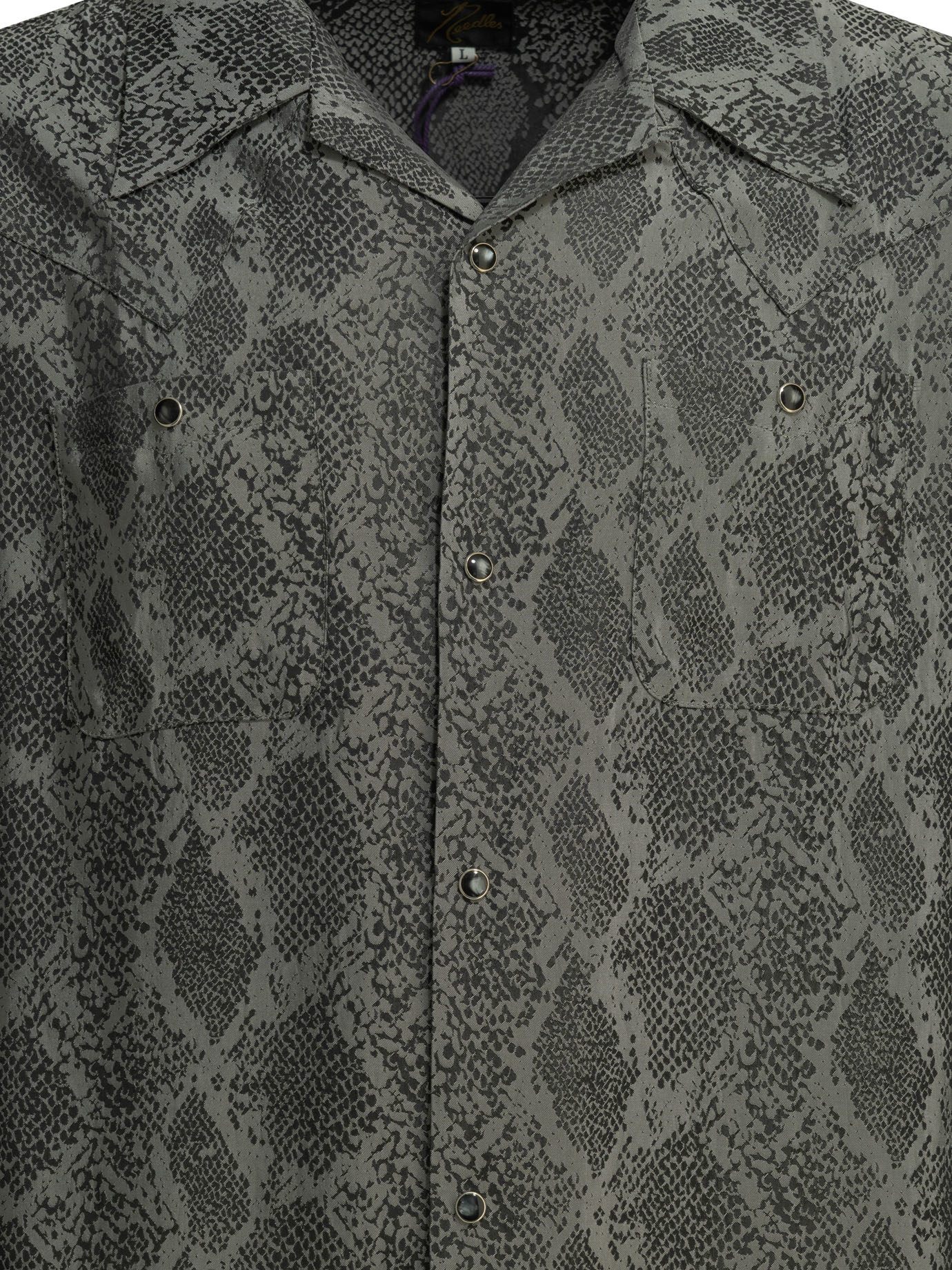 cette pièce de la maison needles pour homme est un vêtement de prêt-à-porter au design western et audacieux conçu pour la saison printemps-été 2026. fabriquée au japon, elle est confectionnée dans un tissu jacquard de première qualité associant la rayonne (71 %) et l’acétate (29 %), offrant une structure fluide, une main soyeuse et un drapé exceptionnel propre aux standards de la haute manufacture japonaise needles. sa silhouette « cowboy one-up » se distingue par son motif python complexe et son col camp, alliant l’esthétique rétro américaine à une sophistication textile idéale pour vos tenues de prestige quotidiennes. le design au coloris gris présente une construction soignée avec un empiècement en pointe aux épaules, signature du prestige et de l’identité visuelle de needles. la structure inclut une fermeture par boutons-pression et une coupe relaxée, garantissant une silhouette équilibrée, une grande liberté de mouvement et un confort de porter exemplaire. ce modèle allie parfaitement la noblesse d’un mélange de fibres artificielles sélectionné à une ingénierie de tissage jacquard de luxe, constituant une pièce de collection indispensable pour votre vestiaire.